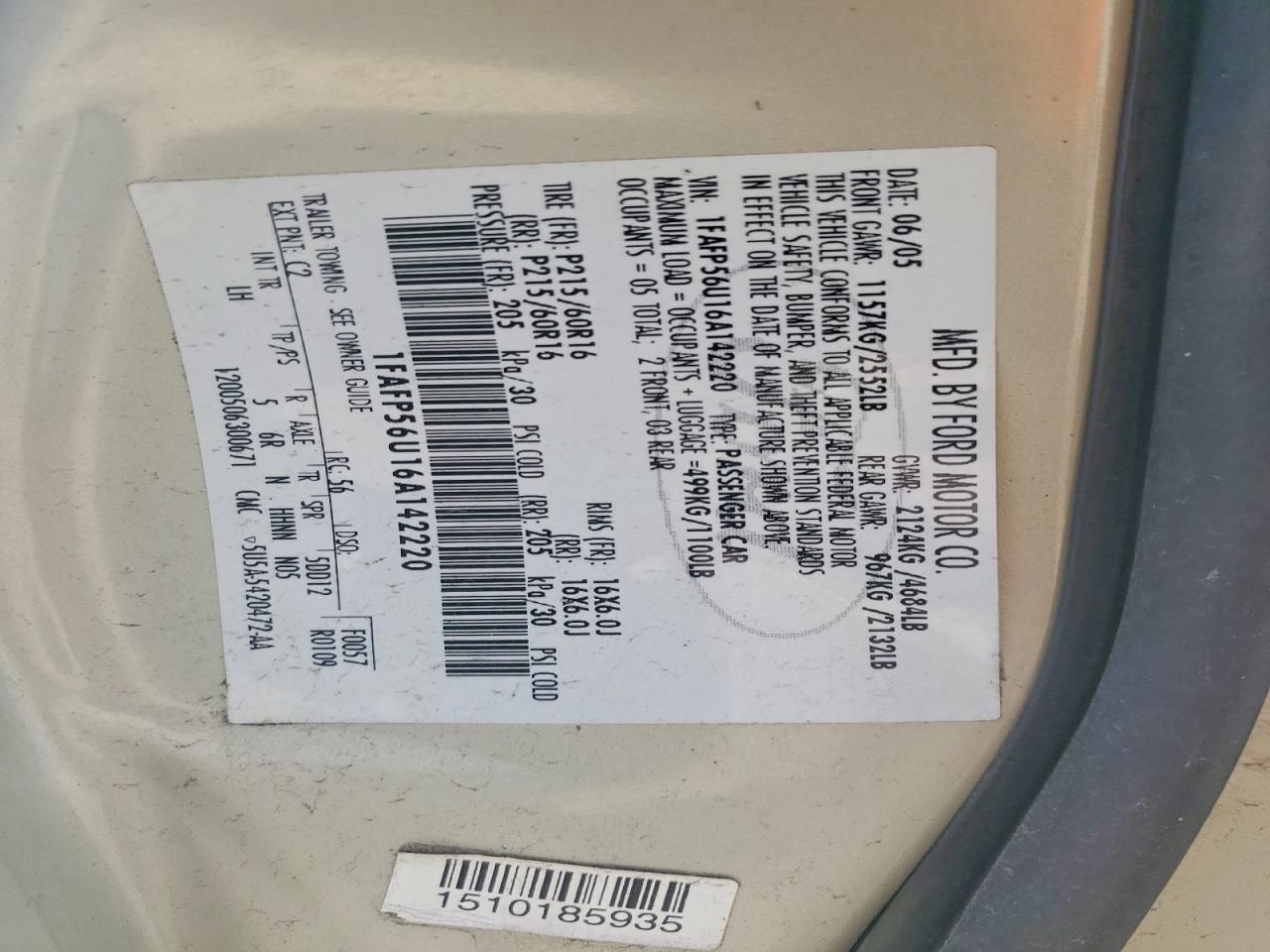 1FAFP56U16A142220