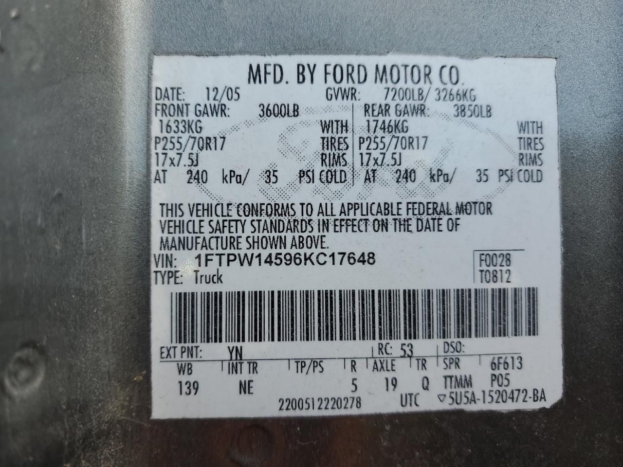 1FTPW14596KC17648