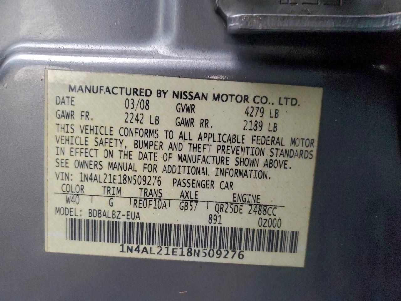 2008 NISSAN ALTIMA 2.5