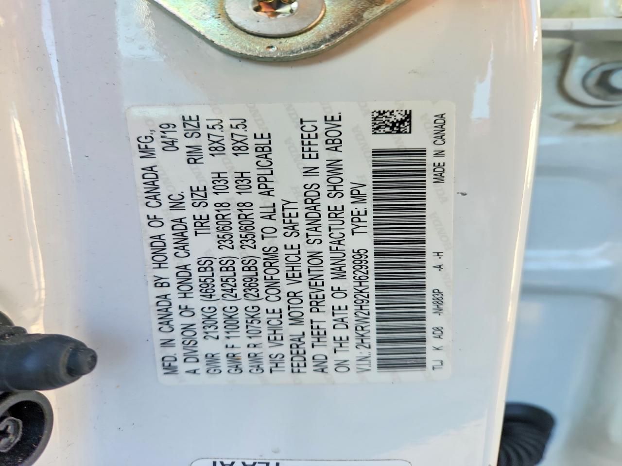 2HKRW2H92KH629995