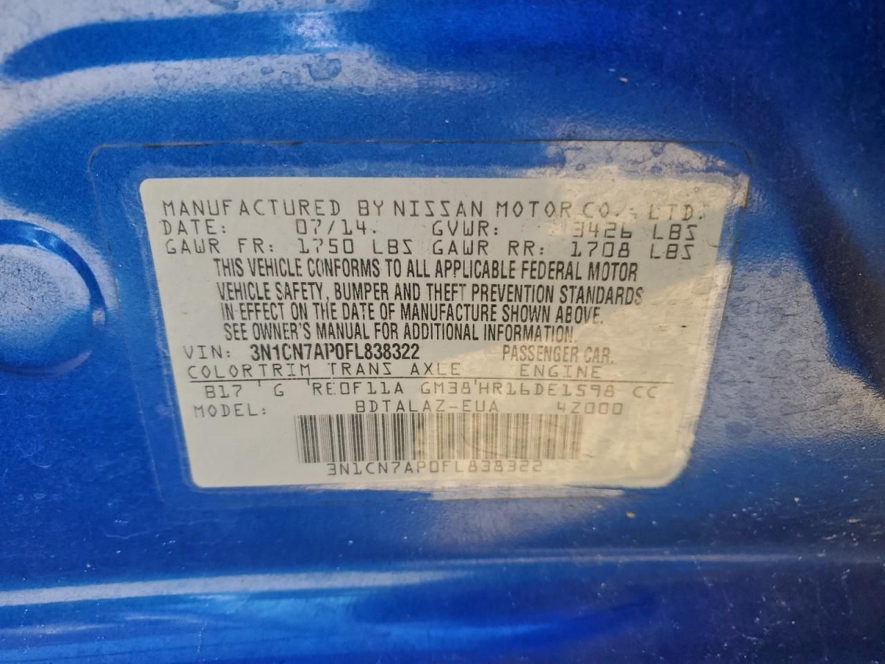 2015 NISSAN VERSA S