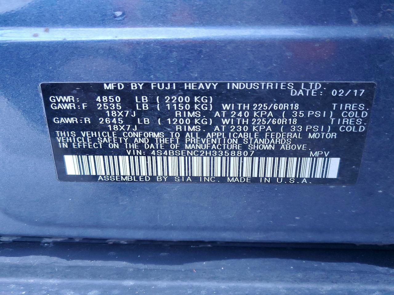 2017 SUBARU OUTBACK 3.