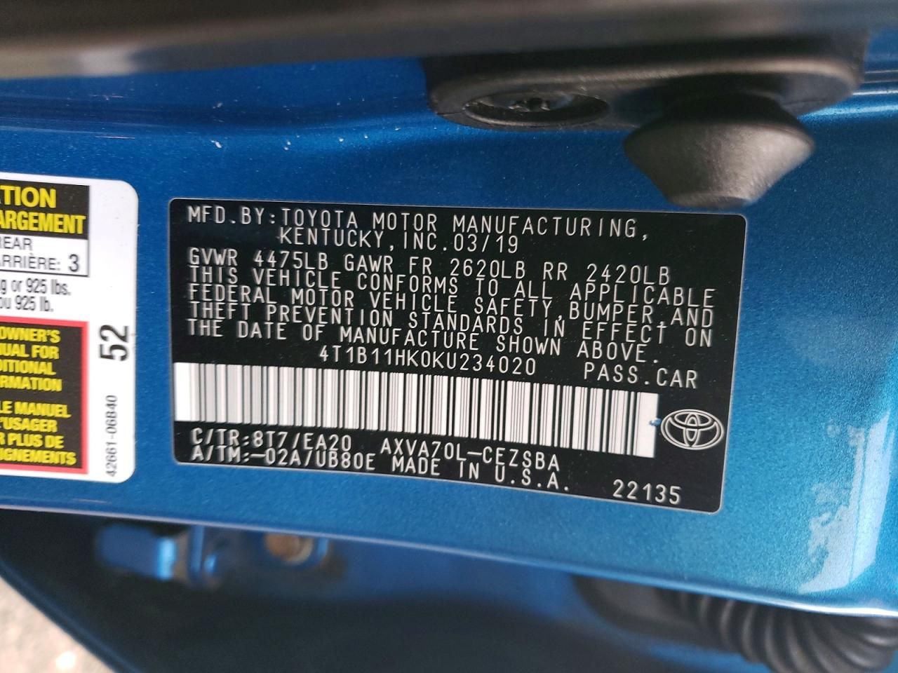 4T1B11HK0KU234020