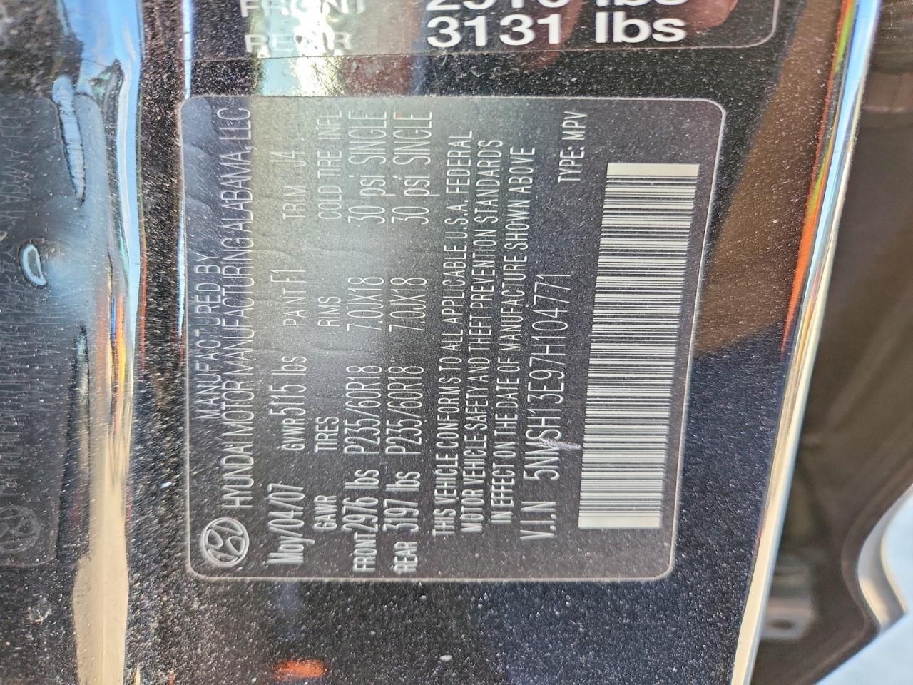 2007 HYUNDAI SANTA FE S