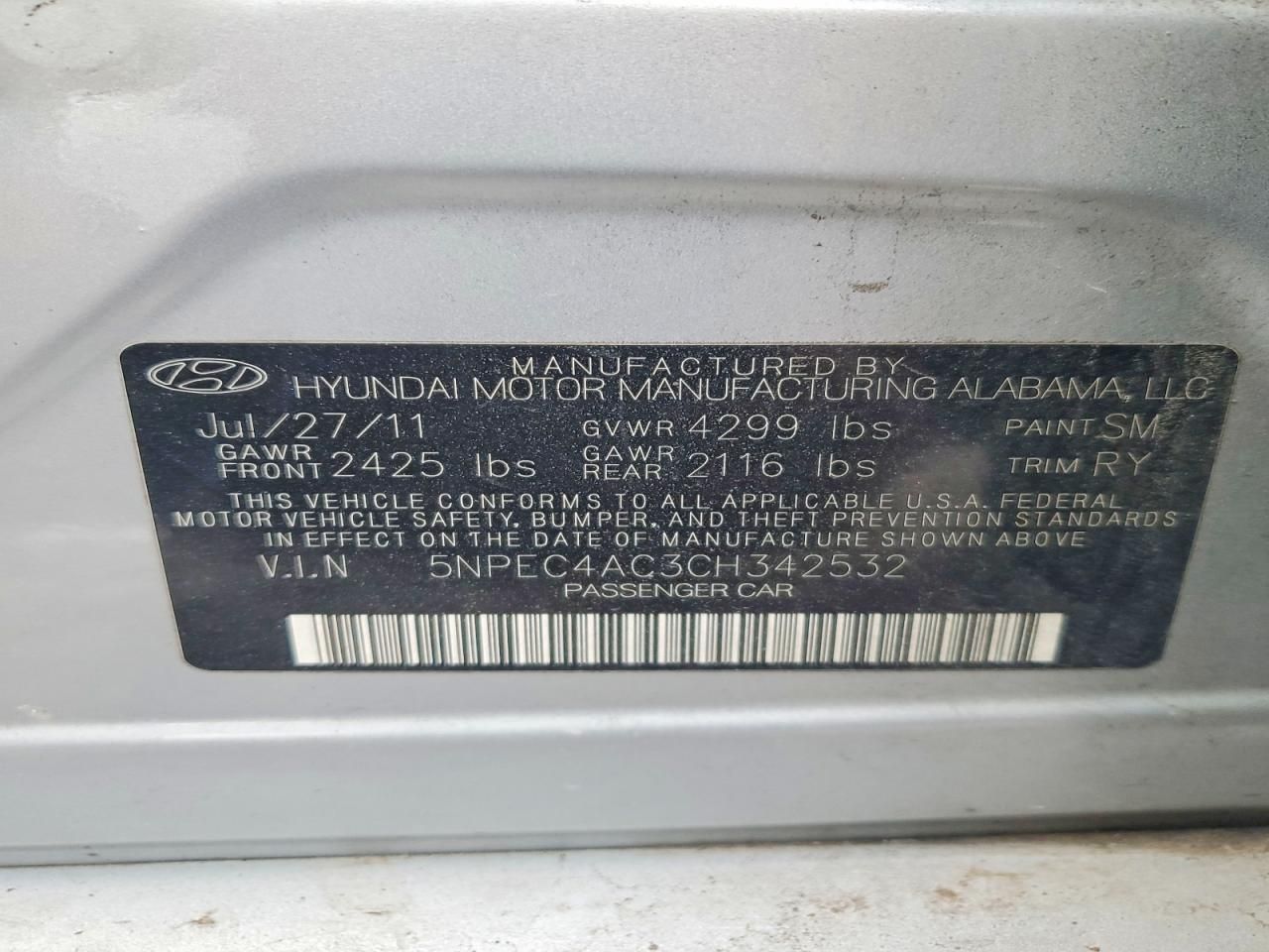 2012 HYUNDAI SONATA SE
