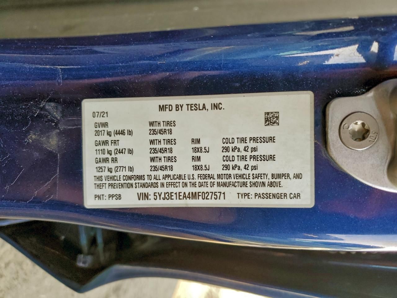 2021 TESLA MODEL 3