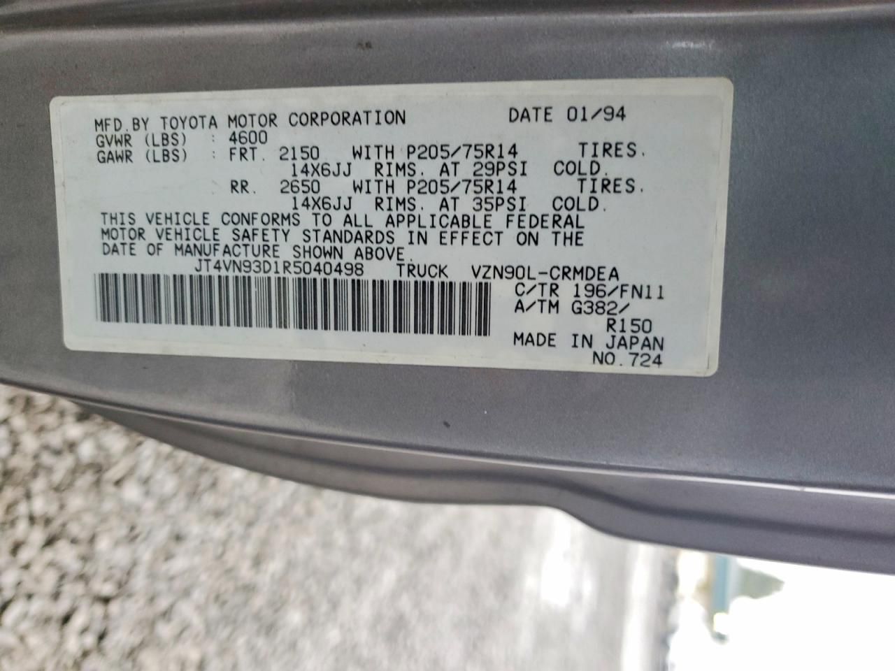 1994 TOYOTA PICKUP 1/2