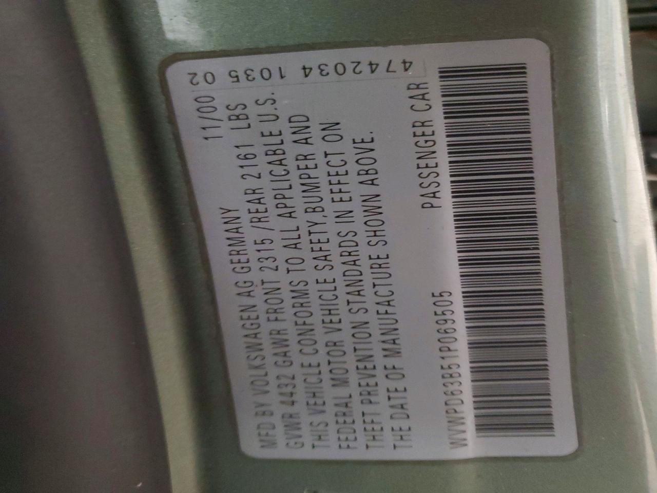 2001 VOLKSWAGEN PASSAT GLS